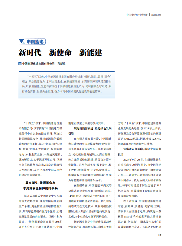 中國電力企業(yè)管理:新時代 新使命 新能建